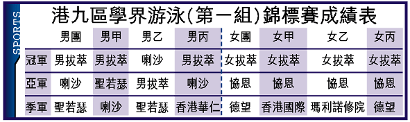 港九區學界游泳(第一組)錦標賽,在九龍公園室內泳池展開決賽,