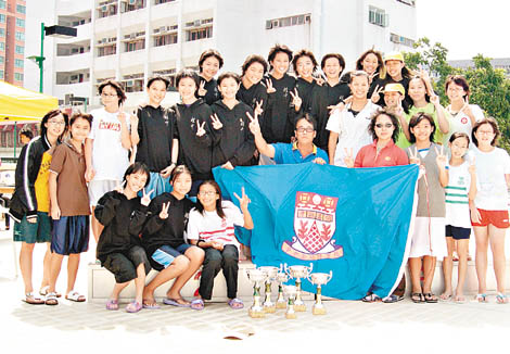 由學體會主辦的新界學界中學游泳賽,新學年元朗區賽事已告完成,趙聿修紀念中學保持這項目的優良傳統,在男女子共六組團體賽事中,取得與去年一樣三個總冠軍,新界鄉議局元朗區中學則突破去年兩項團體冠軍成績,也取得三冠與趙聿修各領風騷。 趙聿修取得團體冠軍有男子丙組、女子甲及乙組,元朗鄉中則在男子甲、乙組及女子丙組稱王。 本屆比賽元朗各校競爭一如已往般激烈,個人及接力項目,男子組有八個及女子組更有十一個項目,共廿一項刷新大會紀錄,其中女子丙組出現六項新績,顯示元朗區新血湧現,未來時間成績將不斷進步。至於兩名元朗女子新一代泳手表表者,趙聿修的畢彗婷在女子甲組不僅保持兩項個人冠軍,其五十米自由泳及二百米個人混合泳更保持進步,造出新紀錄,其中五十米自泅出二十八秒七四,快舊紀錄百分之二十一秒,混合泳二分四十秒三五,快舊紀錄近八秒。元朗鄉中的吳加敏在女乙五十米蝶泳也造出三十秒七四新紀錄,快大會舊績近兩秒,她也贏得二百米個人混合泳冠軍。在各組比賽中以女子丙組的成績最為突出,一班小將在該組共刷新六項紀錄,當中趙聿修的王愷蓉分別在一百米及二百米背泳破紀錄兼為學校奪冠,而男子乙組的表現也不俗,十二個項目創出五項新紀錄,當中趙聿修的羅棨駿分別在一百米及二百米自由泳奪標兼平紀錄及破紀錄。 帶領趙聿修泳隊的麥永傑老師,一直留意區內新苗,他指出今年剛升上該校中一的王愷蓉的蛙泳,以及元朗鄉中黃雪瑤的蝶泳,均有相當好潛質,二人各取得兩項冠軍,造出三項大會紀錄,他認為各人均有與市區學校前列泳手一爭的實力,故本月廿三日進行的學界埠際賽遴選賽,元朗學生將有機會一爭長短。 新界學界中學元朗區泳賽,趙聿修女子隊取得甲、乙組團體冠軍及丙組季軍,再次大豐收,師生展示勝利手勢。 (東方日報 16-10-04) |