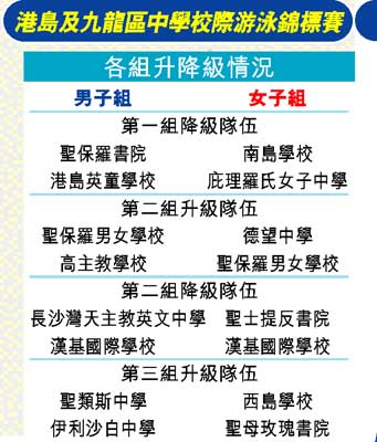 港九區校際游泳賽(第一組),將於本月十五日及十九日舉行,