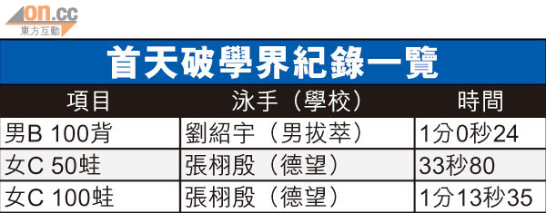 | 徐海東 | 男子200米蛙泳 | 2分14秒59 | 破香港紀錄 |