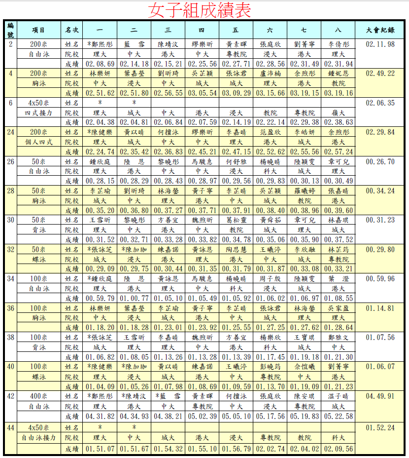 | 如泳員有任何資料錯誤或不便公開,敬請通知本人以作刪改。 |