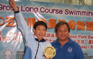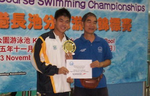 香港泳手余海平昨日在二○○五年香港長池分齡游泳錦標賽,於五十米背泳以廿七秒八○刷新香港紀錄,快舊紀錄百分之四秒。個人獎項方面,謝浚浩及韋漢娜分別獲得男、女子最佳泳員獎。