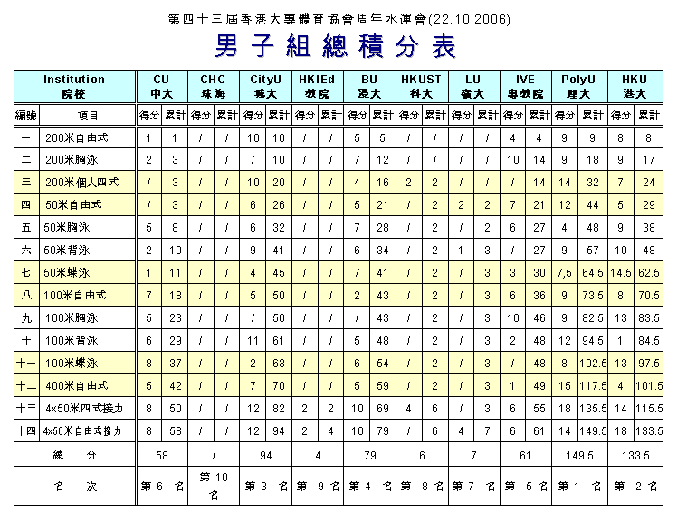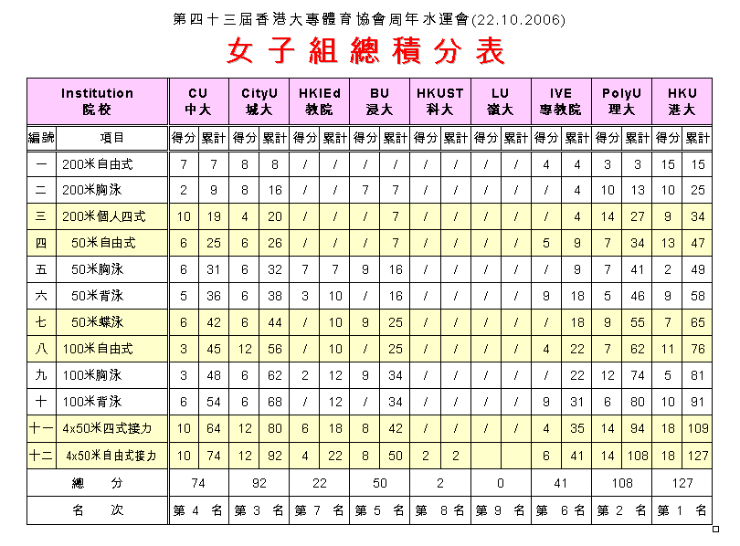 | 2006年度大專盃水運會 22/10/2006,城市大學,50M |
