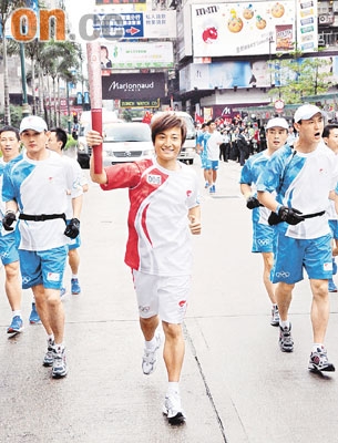 方力申興奮停不了 身為火炬手之一的方力申,表示傳遞聖火後接到很多人給他短訊,問他跑緊時為什麼不停喘氣?他表示其實不是喘氣聲,是他太興奮,拿茪鶿笛銇]邊揮手,他就發出喔喔聲,可能因此被誤會喘氣。 他稱與其他10 名火炬手同坐旅遊巴出發,大家很團結地互相叫加油。他表示上一次在雅典奧運會當火炬手傳聖火,沒有今次熱鬧和興奮,因上次不是在鬧市中傳聖火,今次一來是自己地方,二來在彌敦道兩旁都有市民高呼「加油」,令他很開心。他的父母更是看完他傳聖火後才返工。方力申將火炬傳給陳慧琳,但當時沒有擊掌,在旅遊巴士上就有和陳慧琳擊掌。 方力申負責跑彌敦道清真寺那段路,當他跑完後,有人在清真寺示威起哄,他說也聽到示威聲,但沒有擔心自己的安全受威脅,他指每個人都有示威的自由,只要用和平方式就可以,他看到外地有人自焚、搶火炬或用滅火筒等都不是好的示威形式。 明報 2008-05-03