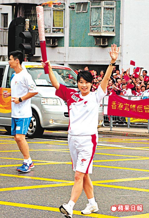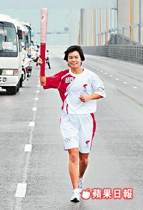 李穎詩大肚傳聖火 風之后見慣風浪,昨晨那團火卻累她無覺好唌G「噚晚埜o唔太好,始終有羉繸i,因為我唔想鬺痦臚@棒儮L程發生唔好翵ヾC開始時仲有蠷嶀腄A怕天雨令我鶶~中滑倒,但睇到市民鷏纁Ф鰩P打氣,就乜狊嶀蒆˙\過驉C」96年奧運滑浪風帆金牌得主李麗珊,跑完第一棒後說。特別從深圳龍崗練車後回港參加火炬跑的黃金寶,對於自己做香港最後一棒的火炬手感到光榮,他又說火炬跑比拿金牌不一樣,「囿鰽P係好個人翵ヾA好個人感受。火炬跑係全港市民翵ヾA好開心,亦好多謝香港市民上街支持我]。」數到跑得最「過癮」的,首推94年曾為香港奪得廣島亞運4×100米自由泳接力賽銀牌得主、現懷孕七個多月的李穎詩。因為她一家三口,包括任海關的丈夫林先生及肚堛漱k兒,都一齊參與火炬跑。她說:「我丈夫有份扒其中一隻護航奰s舟,而我就同肚堶韕B女齊齊跑沙田區;我同丈夫正考慮為個女改名叫『祥雲』或『歡歡』,以紀念這次盛事。」 蘋果日報 2008-05-03