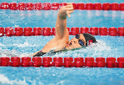 黃鍇威破港績摘金 【本報訊】矢志要在下周日(16日)維港渡海泳做「獎金獵人」的黃鍇威,上周六晚在世界盃短池游泳賽杜拜站先聲奪人,游出破港績的1分46秒70,贏得男子200米自由泳金牌;隊友施幸余在女子100米混合四式摘金,時間是1分01秒53。 今年6月轉為全職泳手的黃鍇威此行收穫甚豐,上周五先破100米自由泳香港紀錄摘銅後,於200米再有斬獲,以初賽第6名入決賽的他,首150米居第3、4位,最後50米發力,以0.03秒險勝意大利的柏施迪奪標,兼較自己保持的香港紀錄快0.81秒。下周日他將會「由短轉長」,角逐全長1.8公里的渡海泳男子個人組,並以游入三甲為目標。 港隊共奪2金4銅 另外,施幸余亦在50米蝶泳和100米自由泳獲得銅牌,連同之前200米自由泳季軍,令港隊在今站共獲2金4銅,滿載而歸。港隊將於今早回港。 蘋果日報 2011-10-10 港泳手世杯迪拜站摘2 金 【本報訊】香港游泳隊在上周六舉行的短池游泳世界杯迪拜站次天比賽分別由施幸余與黃鍇威各奪一金,全日共掃2 金2 銅,以2 金4 銅的成績收官。中國則增添2 金1 銀1 銅,以5 金2 銀2 銅的成績完賽。 黃鍇威施幸余立大功 在上周六的男子200 米自由泳決賽,黃鍇威在最後五十米連超3 名對手,以刷新香港短池紀錄的1 分46 秒70 率先觸壁,為港隊取得迪拜站首金,隊友施幸余則以1 分01 秒53 獲得女子100 米混合泳金牌,並且在女子100 米自由泳游出破香港紀錄的54 秒27奪銅,最後於女子50 米蝶泳以26 秒98 拿下銅牌,在迪拜獨得1 金3 銅。 中國在第二天比賽由劉曉宇以30 秒52 的成績奪得女子50 米蛙泳金牌。女子200 米蛙泳更為中國泳手主宰,樊蓉、劉曉宇及吳悅樂在入水後很快拉開與其他泳手的差距,最終分別盡攬三甲。 大公報 2011-10-10
