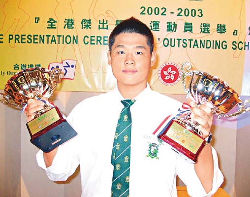 | 2)2003年香港傑出運動員選舉,鍾國樑獲取傑出青少年運動員,陳詠雪則得到傑出新秀運動員。其後鍾國樑再接過「全港傑出學生運動員」獎杯。 |