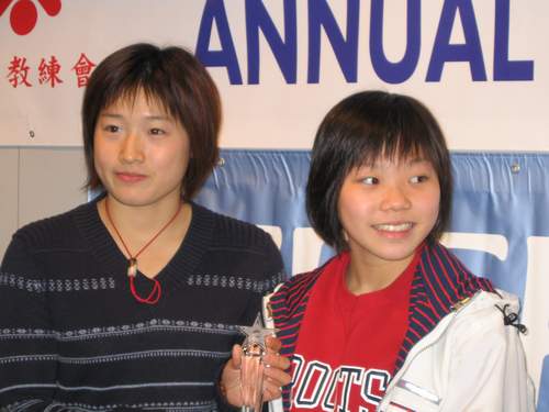 | 10)2003年週年游泳頒獎典禮,譚智健和施幸余勇奪最佳男女泳手,殷浩俊及葉芷華獲得最有進步泳手。 |