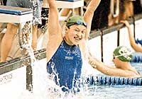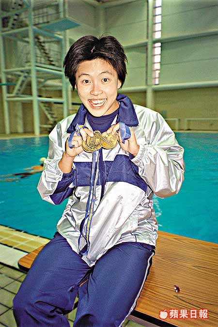 善長背泳及混合泳的她,在本港泳壇可說無人能及。在本港女子游員中,可謂一支獨秀,前途無可限量。九八年代表香港參加莫斯科舉行的世界青年運動會贏得銀牌﹐是本港歷史上「零」的突破。 |